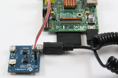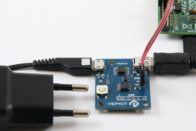 The last step is to connect the power to YKRUD board. You can use the same power supply that you used to power the Raspberry Pi directly, or any other 5V power supply (e.g., cellphone charger).